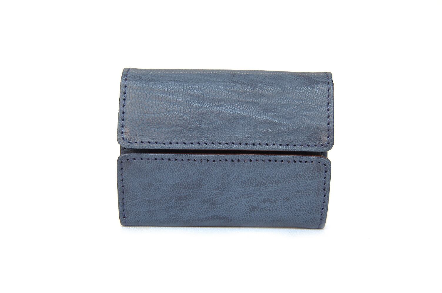 観音開きのような開閉部を持つユニークな形状のコンパクト財布です。