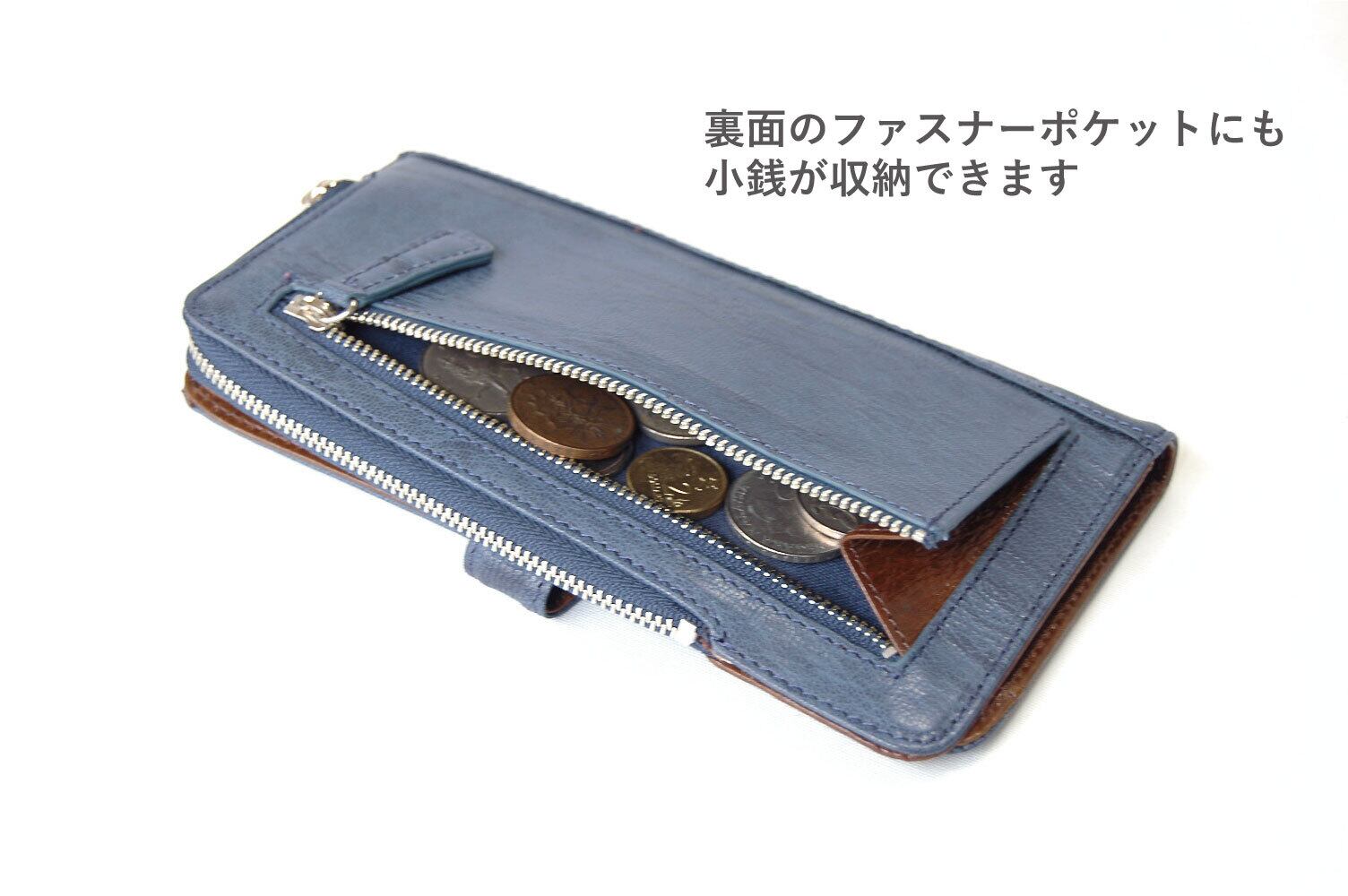 L字ファスナー内部にはコインやスマートフォンなど収納できます。